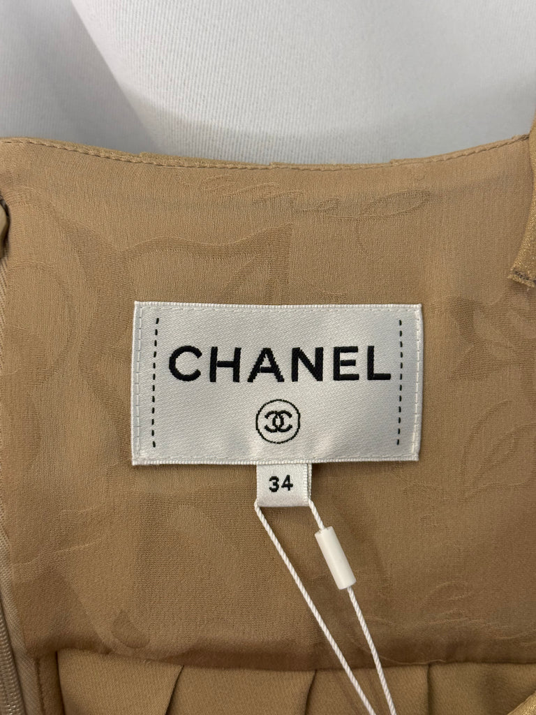 Chanel Georgette Crepe guld klänning fr 34 SV14853