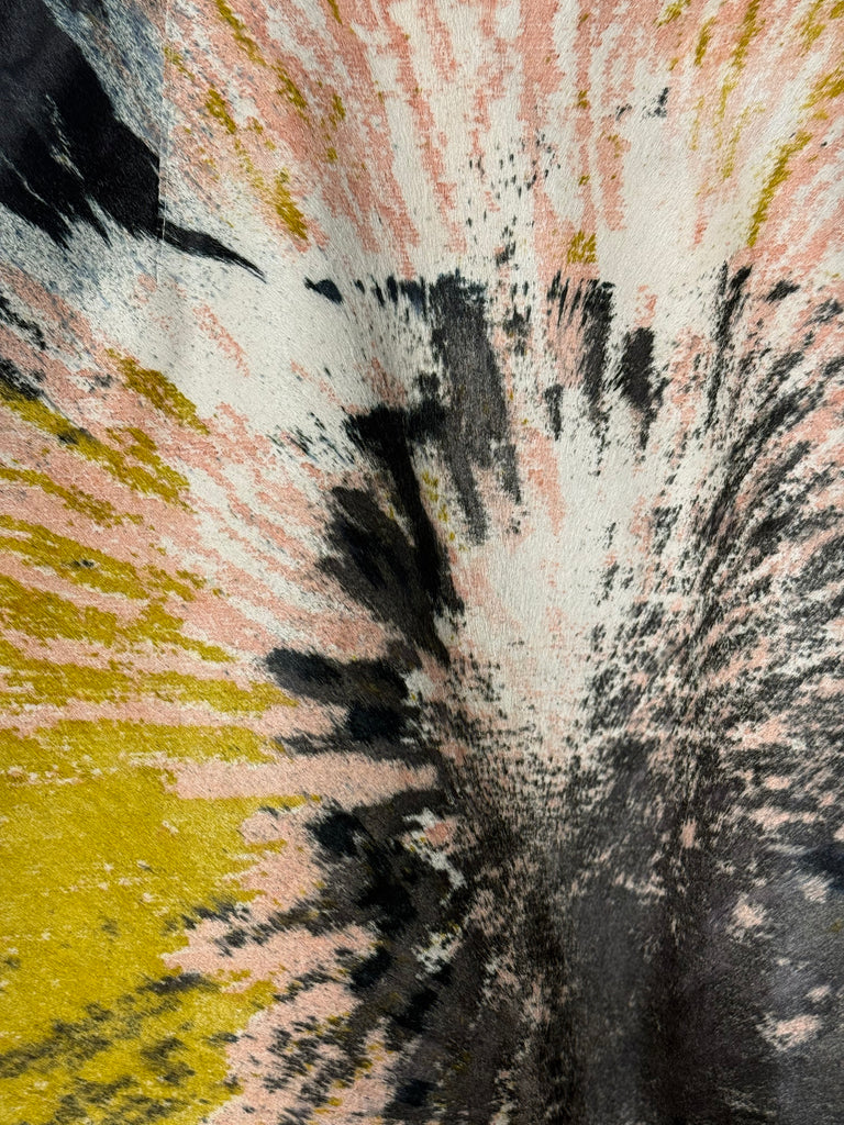 Färg: Härlig färgblandning i grå/svart, rosa, gul, vit och mörkgrön. Svart midjeband.