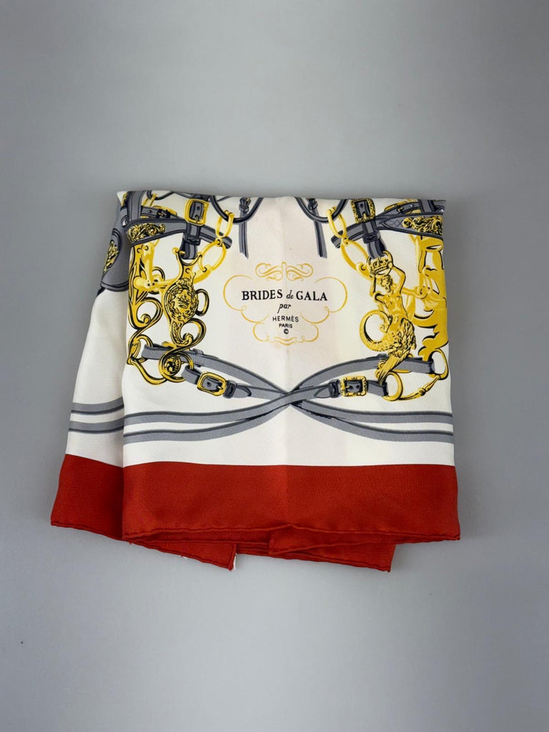 Brides de Gala från Hermès är en av modehistoriens mest älskade scarves, formgiven av Hugo Grygkar – mannen bakom många av husets mest ikoniska motiv. Detaljrikedomen i trycket, med inspiration från klassisk ridkultur, möter en balanserad komposition som gör den lika vacker att bära som att betrakta. Färgpaletten är tidlös, och sidenet har den där karakteristiska tyngden och lystern som bara Hermès lyckas få fram. En scarf med både stil och elegans – ren designhistoria att bära med självklarhet.