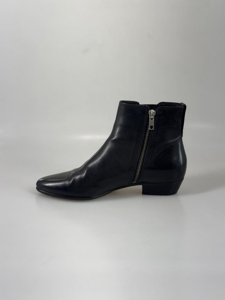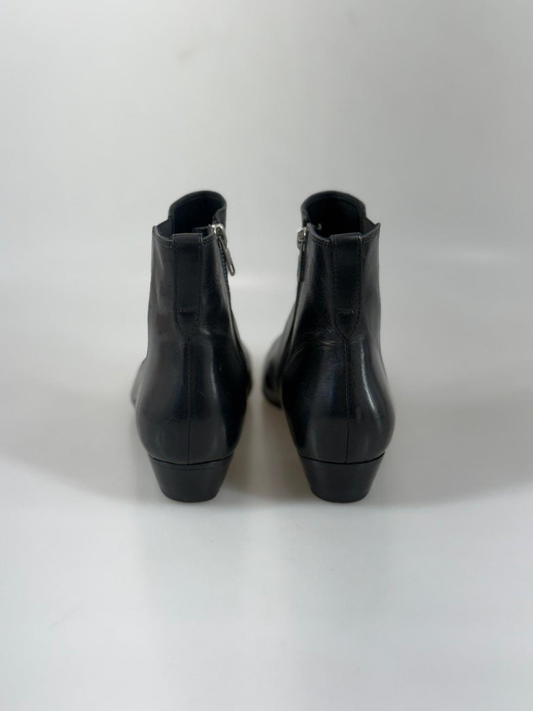 Ikoniska boots från Isabel Marant – en perfekt balans mellan parisisk nonchalans och modern elegans. I svart skinn med en silhuett som är både distinkt och sofistikerad, är dessa boots ett självklart statement i en stilmedveten garderob. Lädret formar sig vackert efter foten, medan den genomarbetade designen ger en avslappnat lyxig känsla. Lika snygga till jeans och stickat som till klänning eller skräddat. För dig som uppskattar kvalitet, attityd och tidlös design med en modern edge. Ej dustbag eller box.