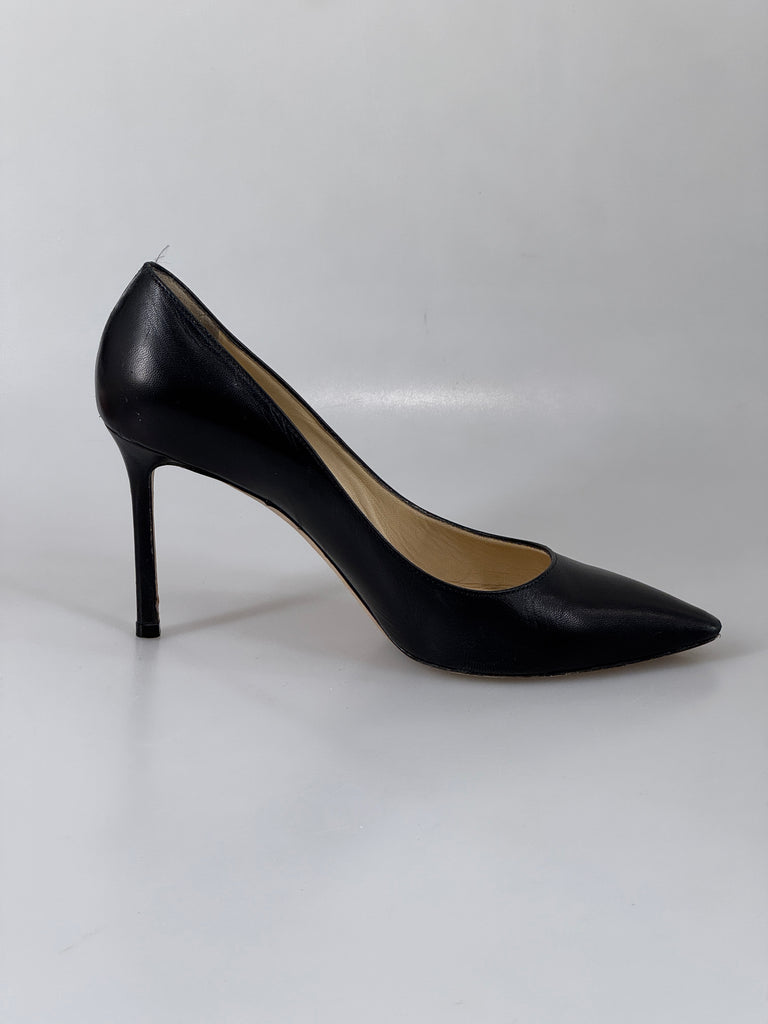 Lyft varje steg med tidlös elegans. Dessa svarta pumps från Jimmy Choo är skapade i mjukt, kvalitativt skinn som formar sig perfekt efter foten och ger en sofistikerad siluett. Den klassiska och balanserade klacken förlänger benlinjen medan den minimalistiska designen gör skorna lika självklara till kontorets power-look som till kvällens cocktaildress. Ett par klassiska pumps som andas elegans, självförtroende och stil – ett måste i varje garderob! Tillverkade i Italien.
