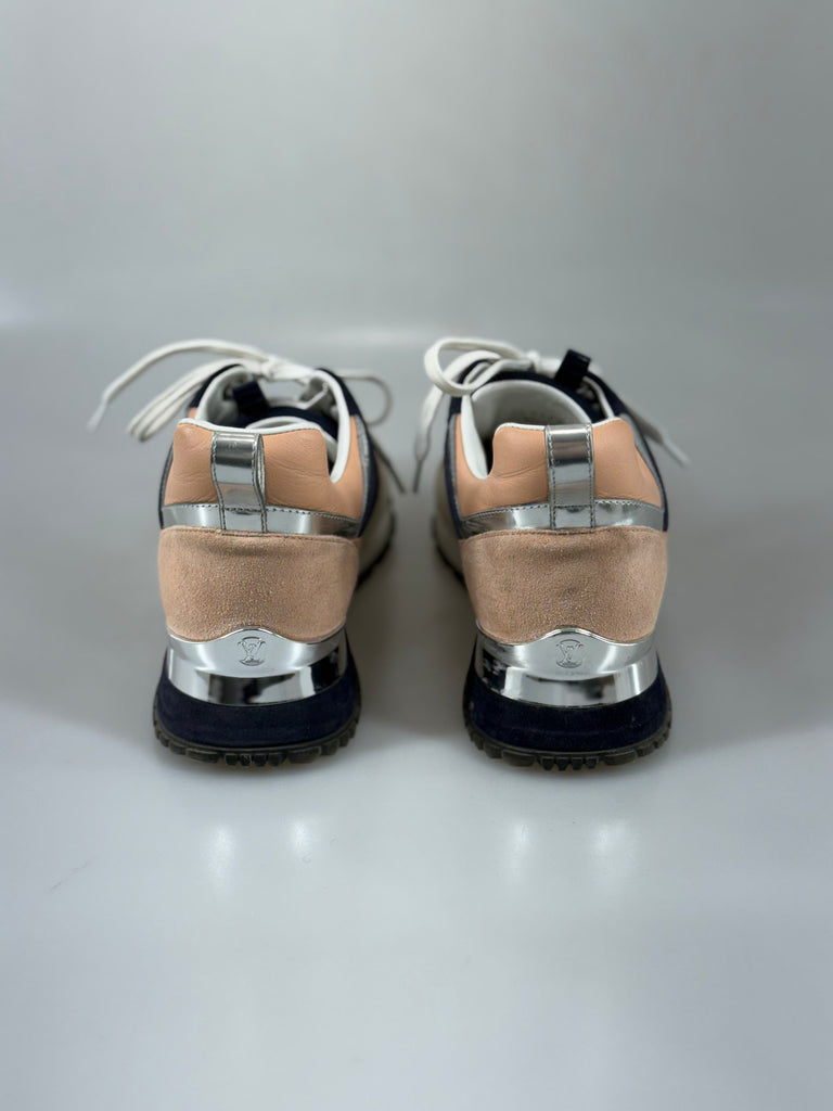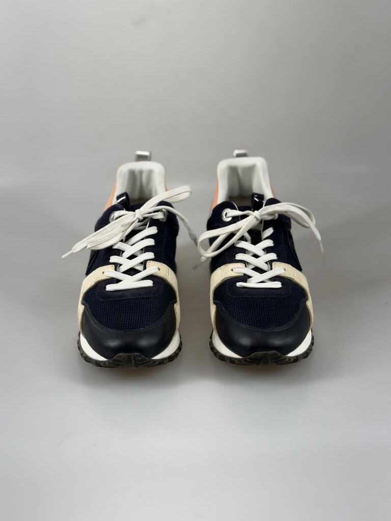 Upplev sportig lyx med dessa Louis Vuitton Run Away sneakers i en chic mix av blå och rosa toner. Den moderna siluetten kombinerar flera material och genomtänkta detaljer för ett ökat djup, samt en lätt platåsula för maximal komfort och stil. Färgerna ger ett fräscht men stilrent uttryck som gör varje outfit både elegant och självsäker – skapade för den med känsla för detaljer. År ca 2019.