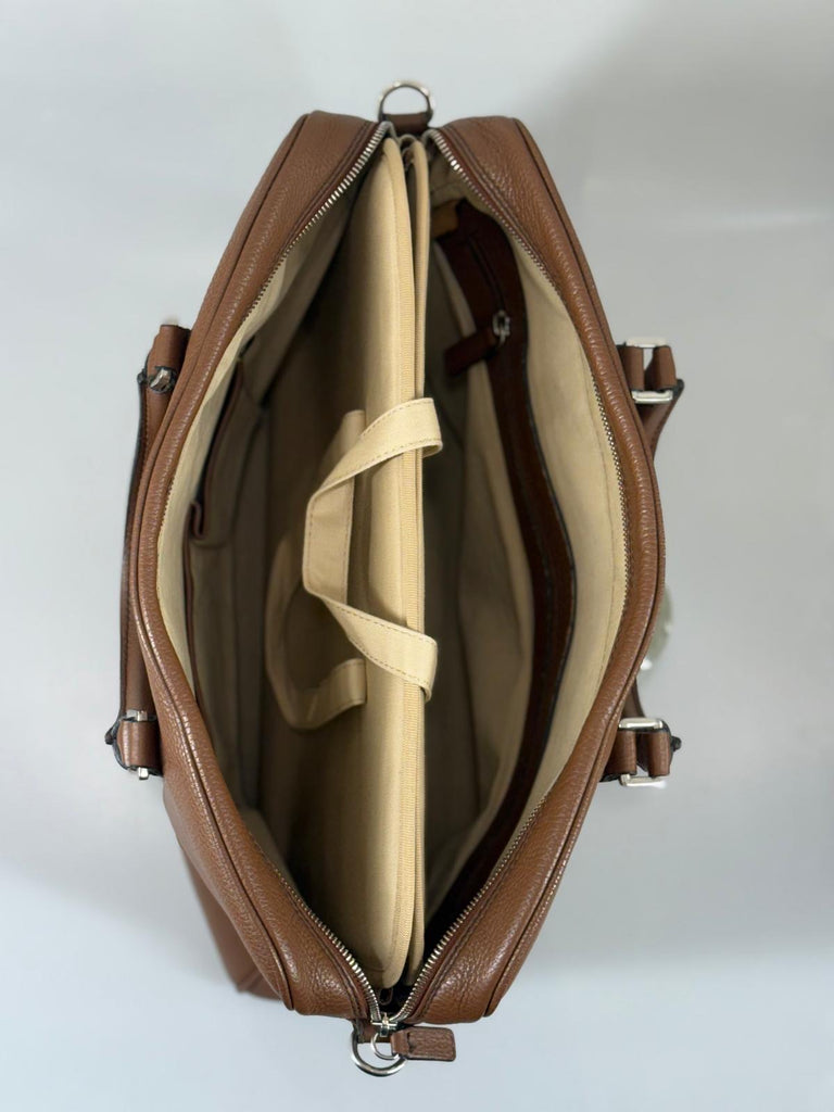 Palmgrens datorväska i cognacsbrunt skinn – en tidlös unisex-portfölj med en varm och levande ton. Väskan är rymlig nog för vardagens alla måsten och har ett löst, vadderat datorfack som skyddar din enhet på ett säkert sätt. Det gedigna lädret åldras vackert och ger varje väska sin egen karaktär över tid. Den justerbara remmen gör den smidig att bära över axeln, medan det klassiska formatet ger ett professionellt och stilrent intryck. En följeslagare för både jobb och vardag med både funktion och design i fokus. Originaldustbag medföljer.