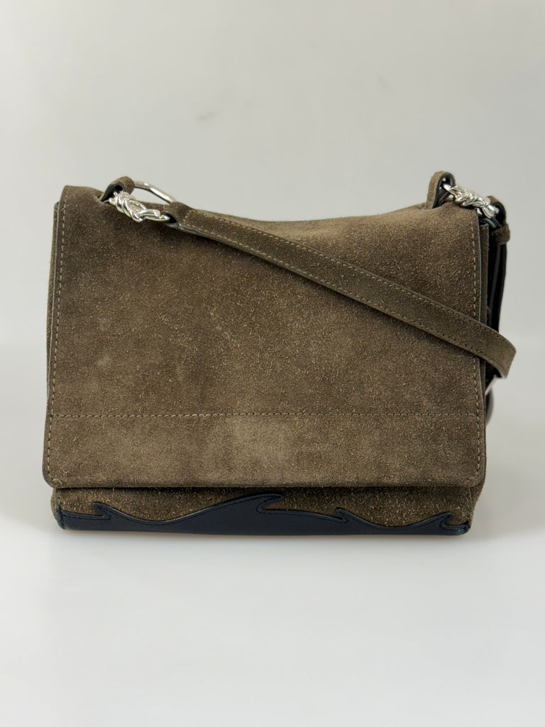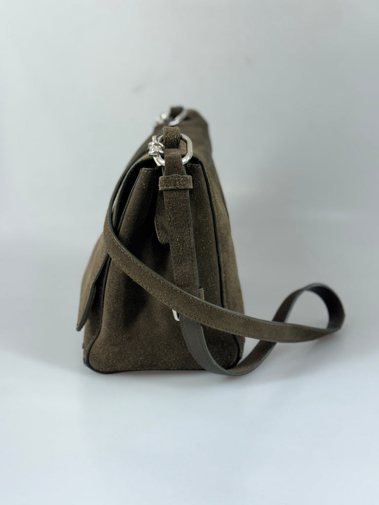 En fin väska från Phillip Lim, perfekt för att sätta en personlig och trendmedveten ton i din look. Tillverkad i mjuk grön mocka, vilket ger den både struktur och karaktär samtidigt som den känns avslappnat elegant. Den djupa gröna nyansen och stilrena läderdetaljerna gör väskan lätt att matcha men ändå tillräckligt unik för att sticka ut. Med sin rymliga insida och häftiga pouch, gör den sig både funktionell och sofistikerad. En perfekt accessoar både till vardagsjeans och mer uppklädda tillfällen. En väska med självklar närvaro - utan att ta över.