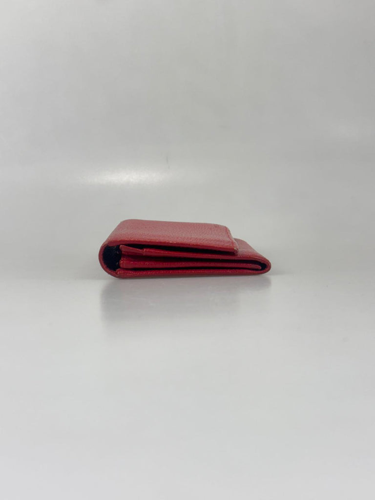 En elegant och iögonfallande compact wallet från Prada i en djup röd nyans med en vacker glansig finish. En klassisk och funktionell modell som får ett häftigt och ikoniskt uttryck. Liten nog att rymmas i mindre väskor, men med smart organiserade fack för både kort och sedlar. En tidlös accessoar, perfekt för dig som vill ha något praktiskt utan att kompromissa med stilen. En chic färgklick som lyfter varje look och tillför en känsla av italiensk lyx och design i vardagen.