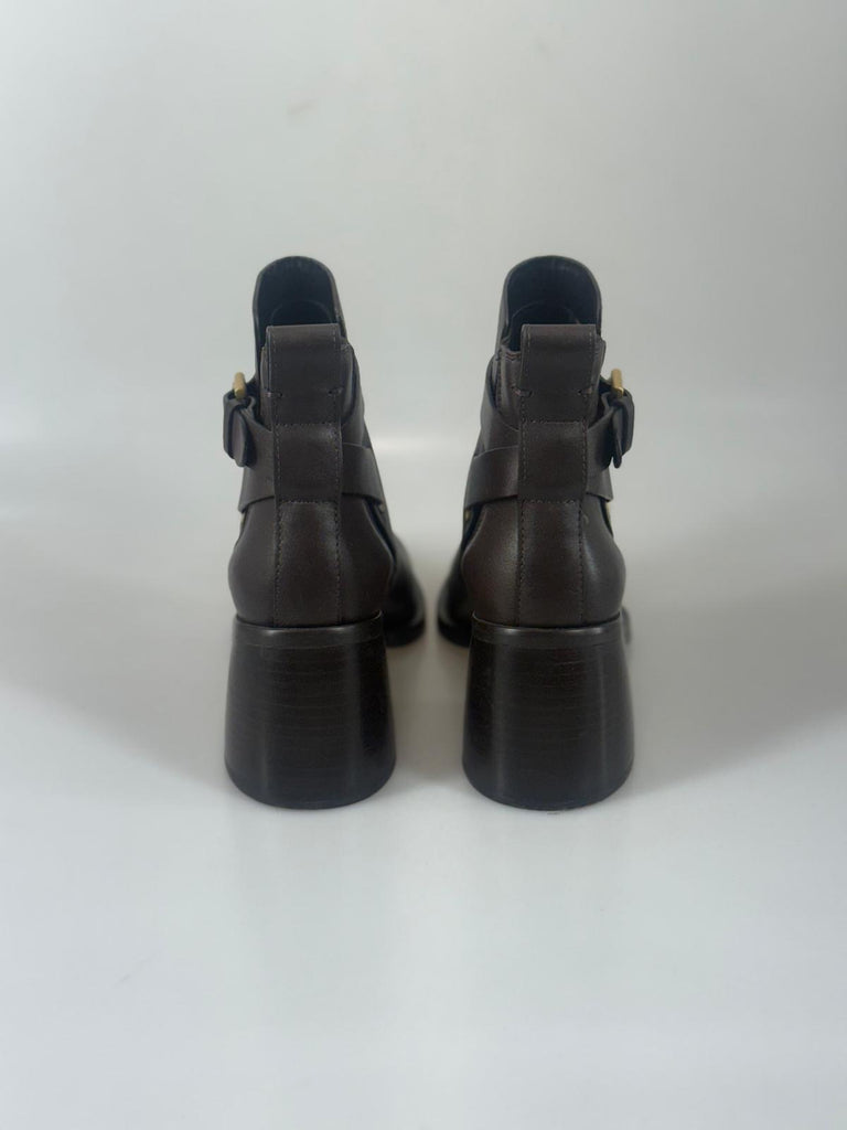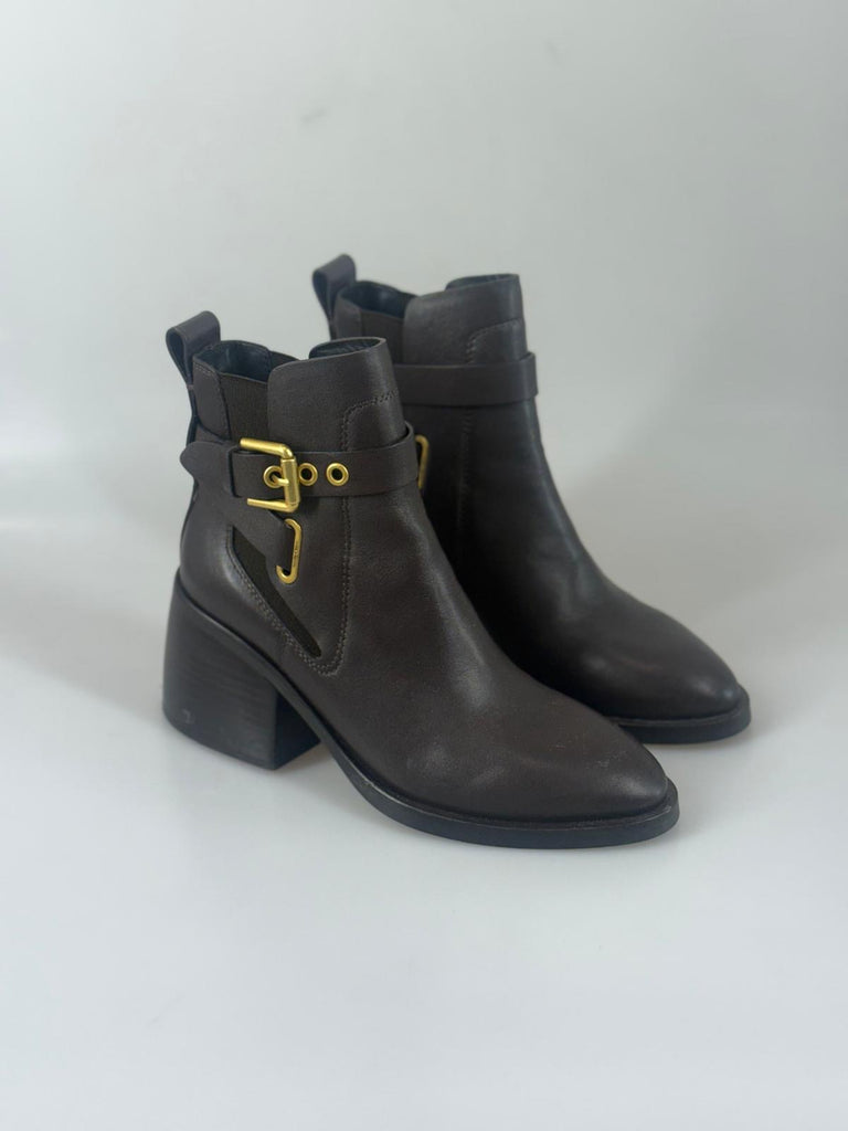 Statement boots från See by Chloé i modellen Averi med en häftig blockklack och dekorativa gulddetaljer. Den djupa chokladbruna färgen skapar tillsammans med metallaccenten en perfekt balans mellan elegansen i de rena linjerna och edgen i detaljerna. En självklar it-boot som lyfter både vardagslooken och mer uppklädda outfits, samtidigt som den bekväma klacken gör dem lika snygga som användbara.
