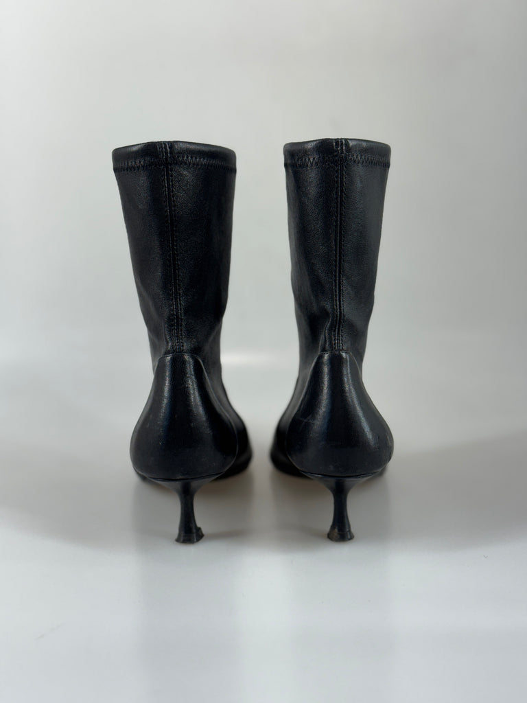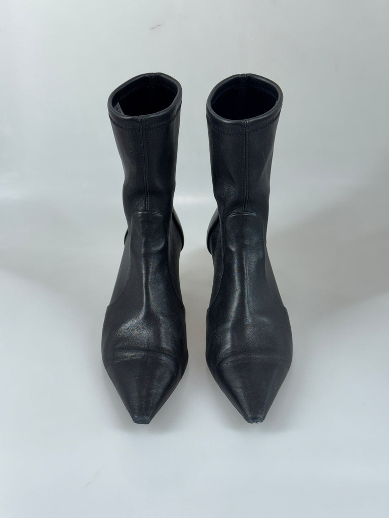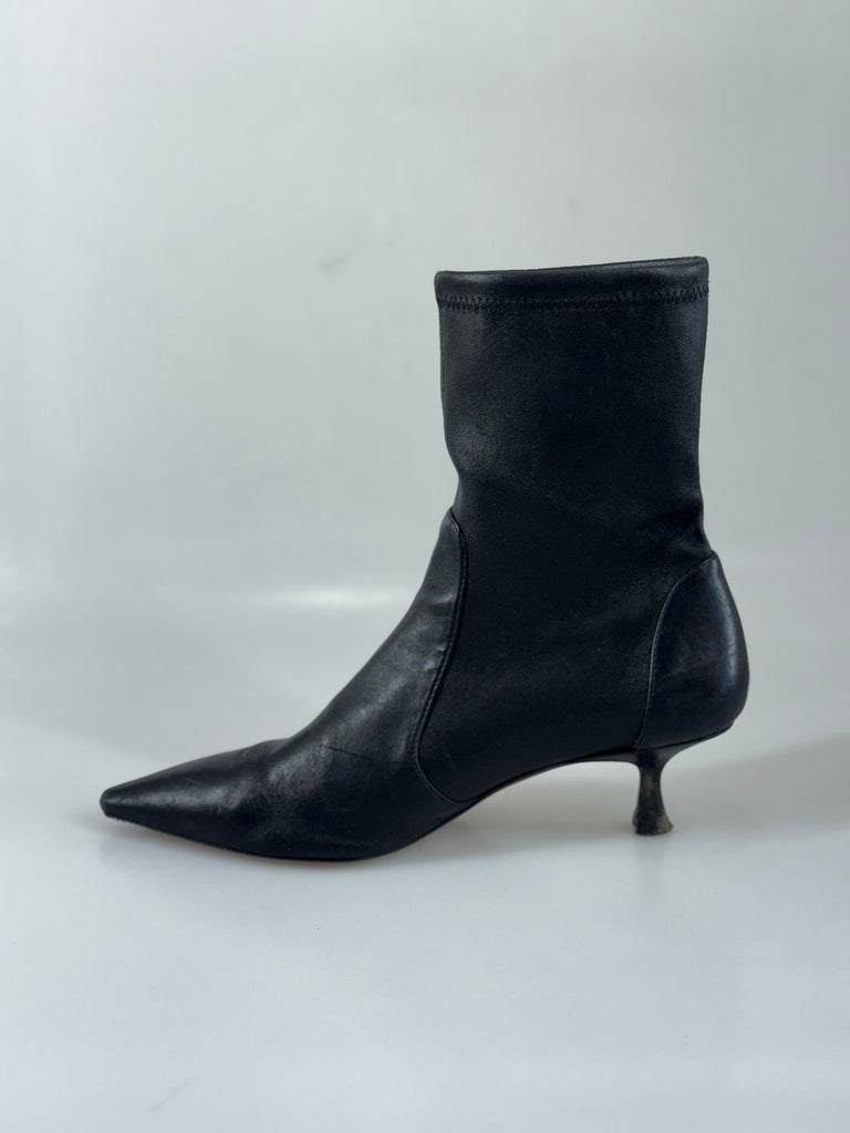 Ge din look en sofistikerad edge med dessa svarta skinnstövletter från Stuart Weitzman. Tillverkade i högkvalitativt, smidigt läder och formade med den perfekta balansen mellan elegans och attityd, är de ett par skor som enkelt förhöjer varje outfit. Den rena silhuetten och låga klacken gör dem otroligt mångsidiga – lika snygga till jeans och stickad tröja som till en skräddad kappa eller en klänning för kvällen. Ett par lyxiga och stilsäkra stövletter som snabbt blir en självklar favorit i garderoben. Kommer med Originalbox.
