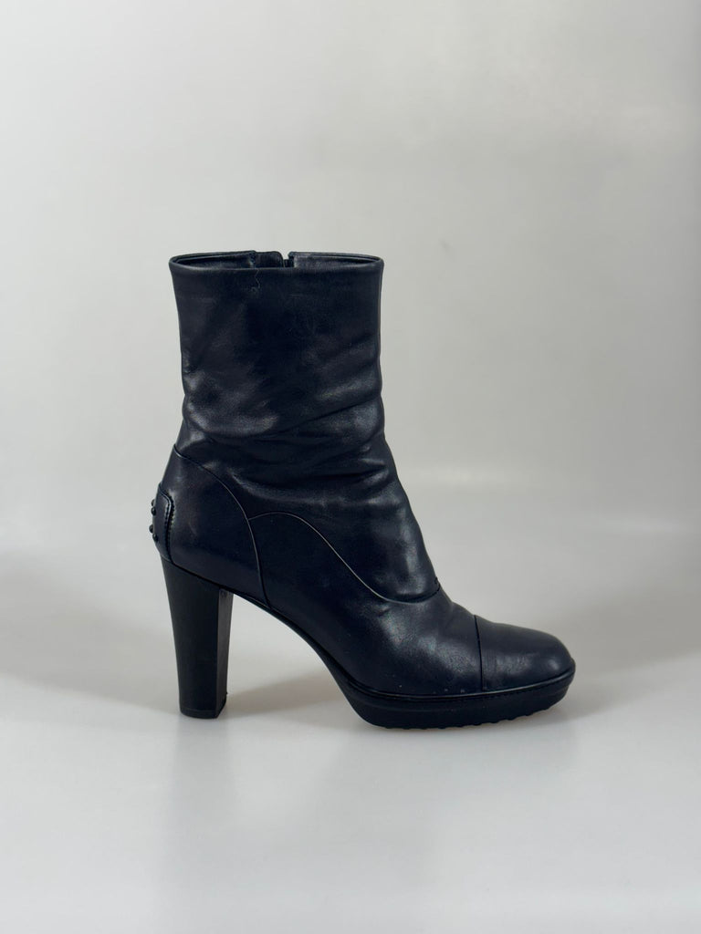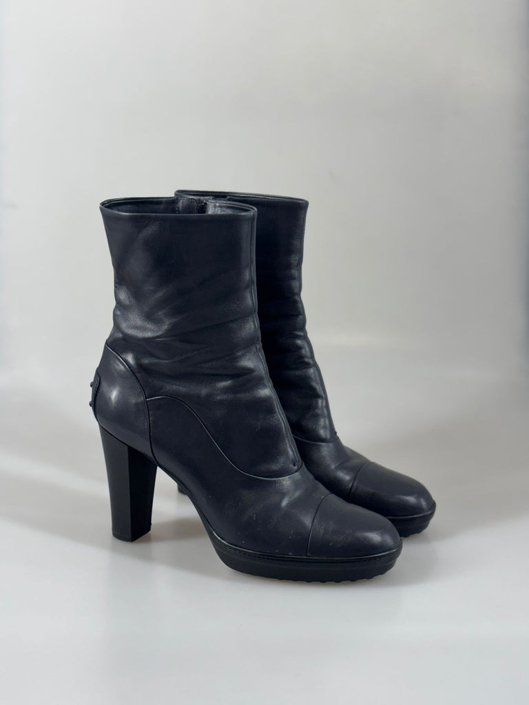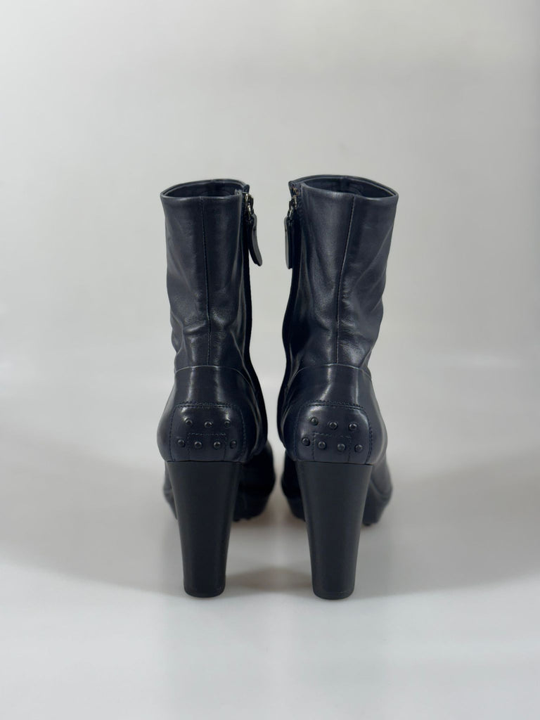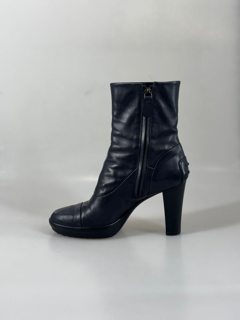 Snygga stövletter från Tod’s – Mörkt blå skinn som smickrar foten med sin mjuka men samtidigt strukturerade elegans. Det höga skaftet och den smala passformen vid ankeln lyfter silhuetten och skapar en lång, nätt look, perfekt balanserad mellan edge och elegans. Kombinationen av Tod’s italienska hantverk och tidlösa design gör dessa stövletter till det perfekta valet för såväl dressade tillfällen som för mer avslappnade outfits. En sko som känns lika självklar under dagen som till kvällen.