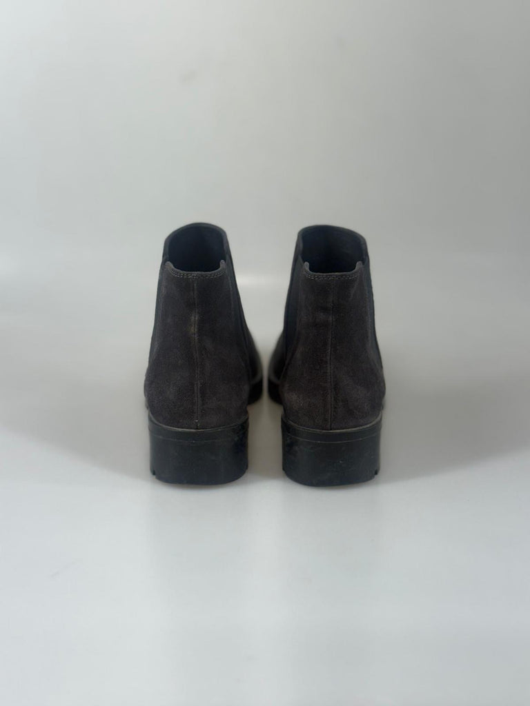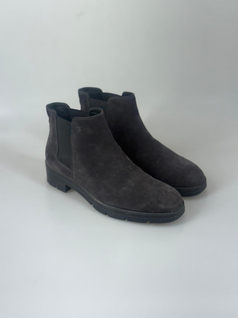 Klassiska Chelsea boots från Tod’s i mörkgrå högkvalitativ mocka. Den tidlösa designen kombineras med den mjuka mockan för ett stilrent och avslappnat uttryck. Med sin rena silhuett och klassiska resårpaneler är dessa boots ett klassiskt val som fungerar lika väl till vardags som till mer uppklädda tillfällen. Ett basplagg för dig som uppskattar italienskt hantverk och diskret lyx.
